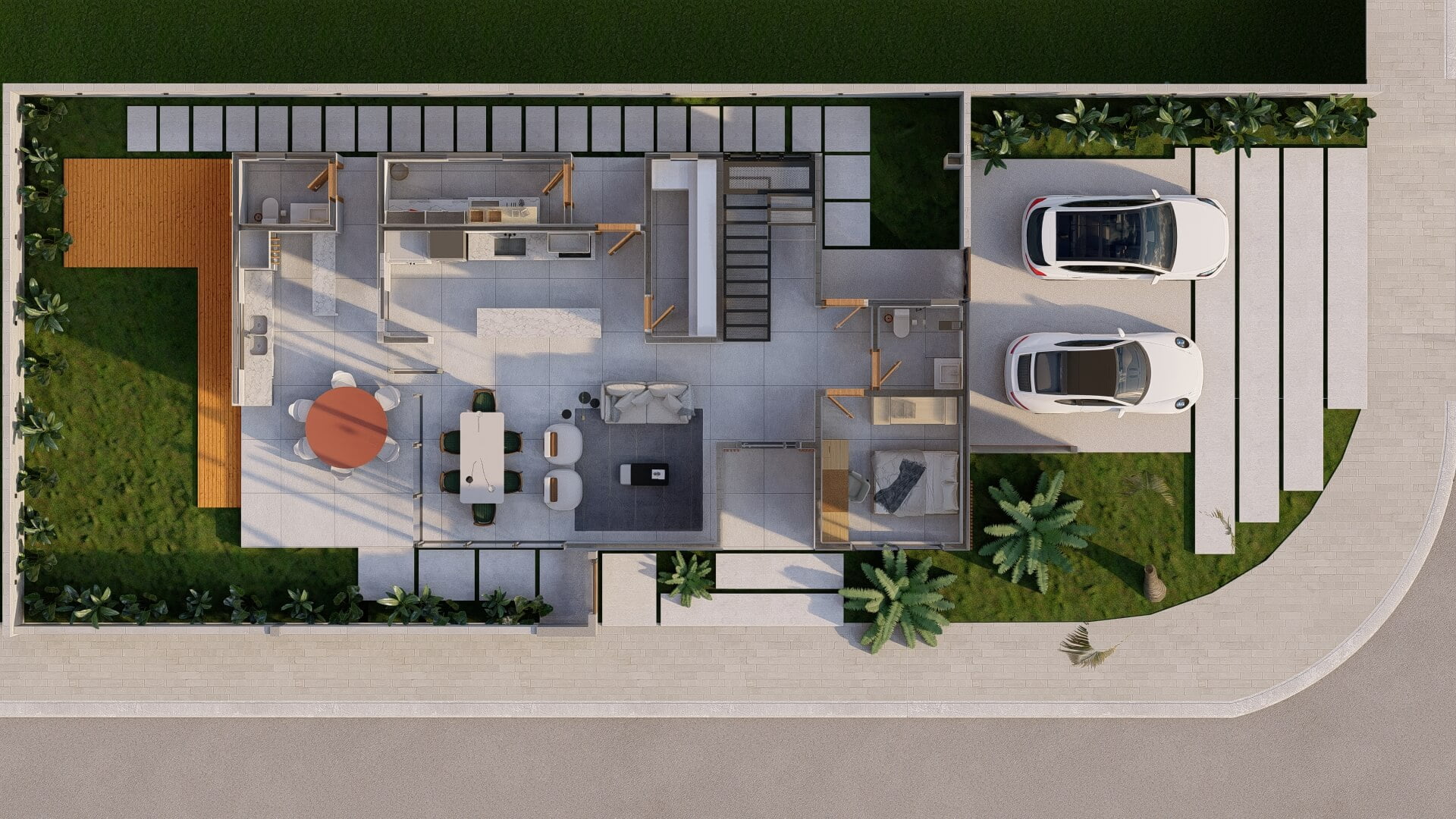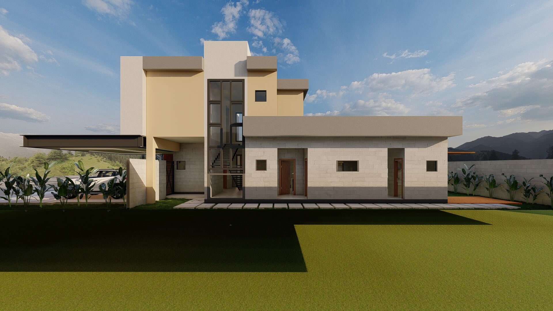 O Projeto AH é uma expressão de elegância e praticidade em um ambiente residencial. Concebido para transformar um terreno de esquina, este projeto é um exemplo notável de como harmonizar múltiplas possibilidades de acesso e fachadas aparentes de maneira sofisticada.