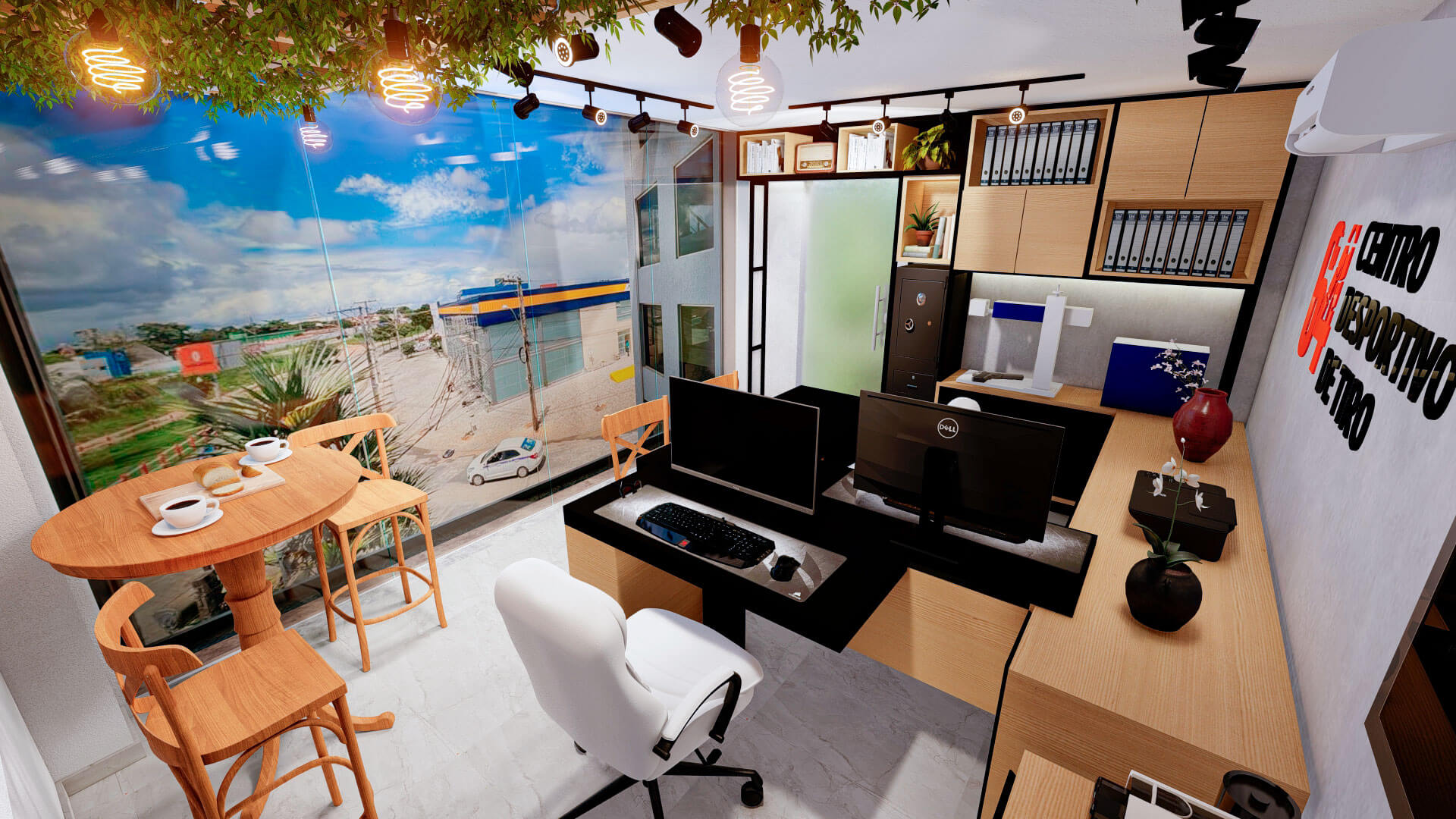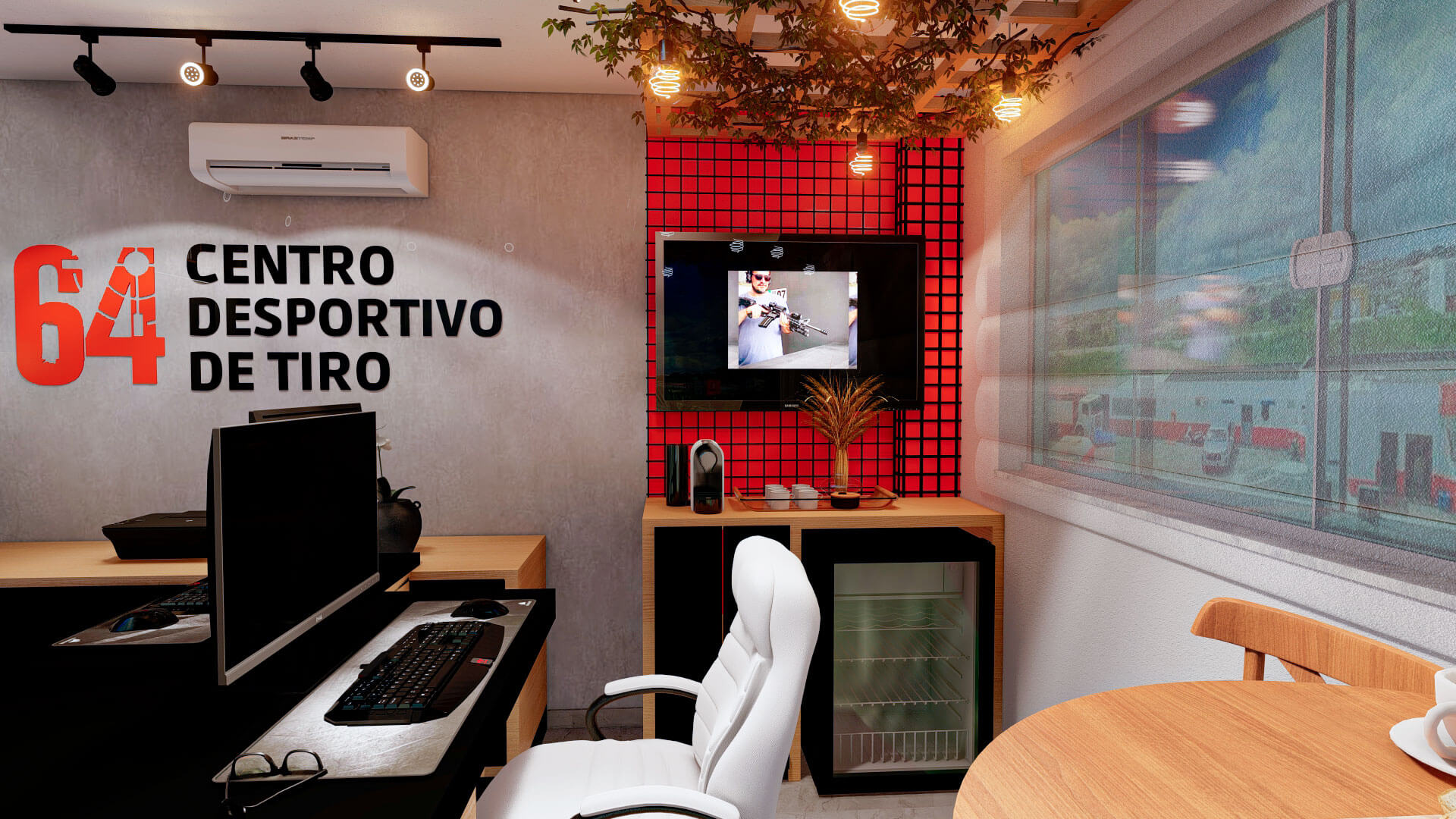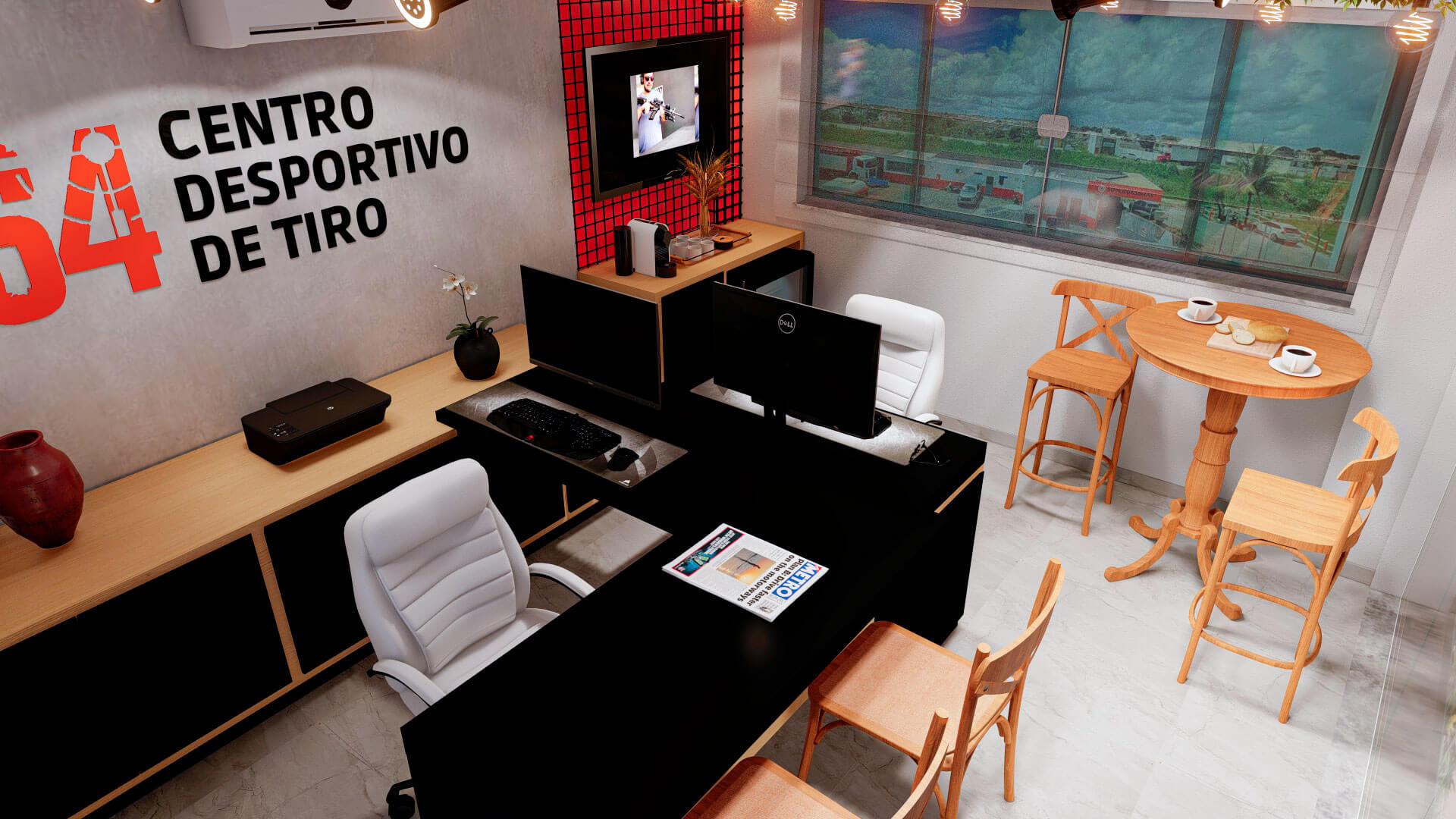 A ideia de versatilidade para a sede administrativa do 64 Clube de tiro e caça, foi a premissa deste projeto de interiores.